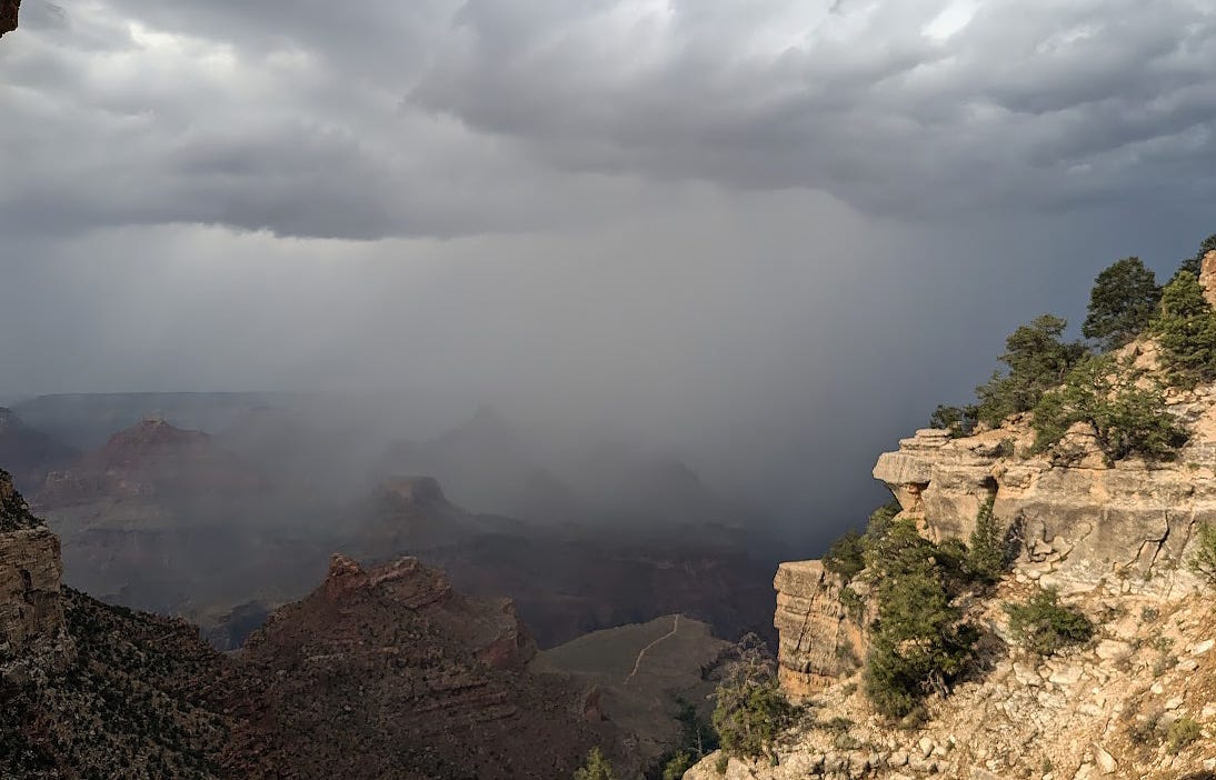 Somewhere above Cedar Ridge – a large flat area with hitching posts for mules and a toilet for people – the sky changed. That sudden desert shift from bright to wounded.